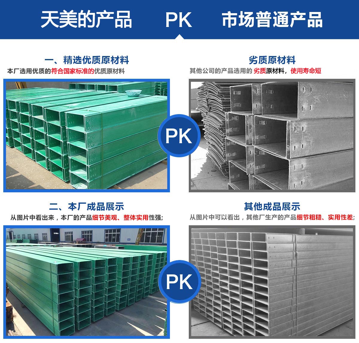 本公司主要產(chǎn)品有玻璃鋼電纜橋架、酚醛樹脂橋架、玻璃鋼除霧器、輪廓樁、防腐檁條、污水池蓋板、模壓化糞池、方形冷卻塔、圓形冷卻塔、RTM真空導(dǎo)入產(chǎn)品、熄焦塔除塵裝置等,公司設(shè)備較優(yōu)良,技術(shù)力量強(qiáng),工人操作水平高,能夠獨(dú)立的進(jìn)行玻璃鋼產(chǎn)品的制造和設(shè)計(jì)、適用于各大工程的建設(shè)。